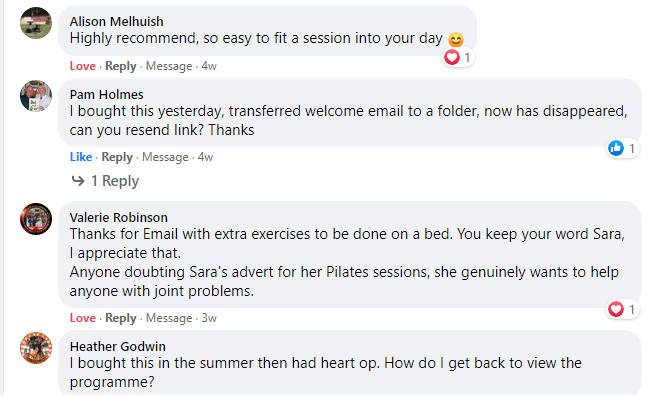 Great care and thought has been put into the exercise videos to make them as safe as possible offering easier safer alternatives Injuries of all types can occur when participating in exercise, physical fitness and training programs. I Sara Pugh, the creator advises you obtain a comprehensive physical examination by a licensed physician/doctor/physiotherapist PRIOR to undertaking any exercise or training demonstrated on this website, and/or any of videos, MP4s, MP3s and training manuals offered on this website, you fully assume the risk of any resulting injury. Such injuries include but are not limited to: bruising, cuts and general soreness, muscle and tendon injuries, ligament and skeletal injuries, fractured or broken bones, concussions, cardiovascular complications.